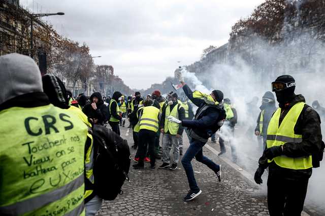Paris: A huge clean-up operation was under way in Paris on Sunday after French "yellow vest" demonstrators clashed with riot police in the latest round of protests against President Emmanuel Macron, but a heavy security deployment averted a repeat of last week's destruction.