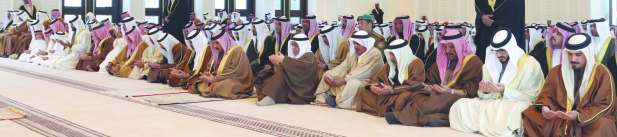 The King, the Crown Prince and senior Ruling Family members perform Friday prayers at Sakhir Palace’s mosque