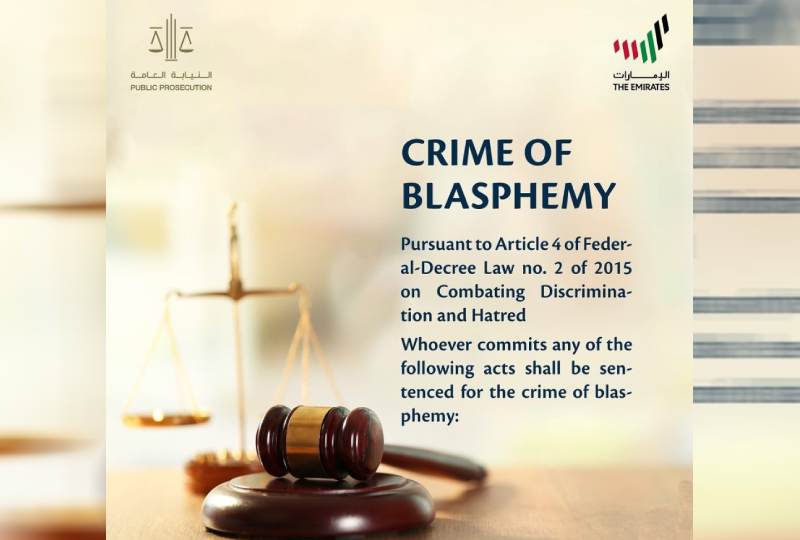 The UAE Public Prosection has outlined actions that constitute blasphemy in the emirates on its social media platforms.