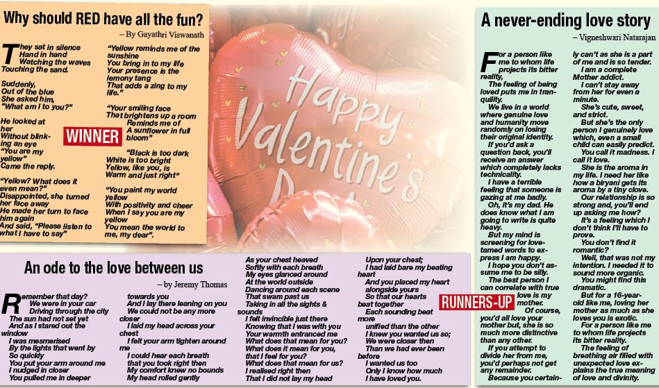 Two runners-up will receive a Raw Candy hamper of prized sweet-but-healthy delights too. They are Jeremy Thomas for ‘An ode to the love between us’ and Vigneshwari Natarajan’s ‘A never-ending love story’.