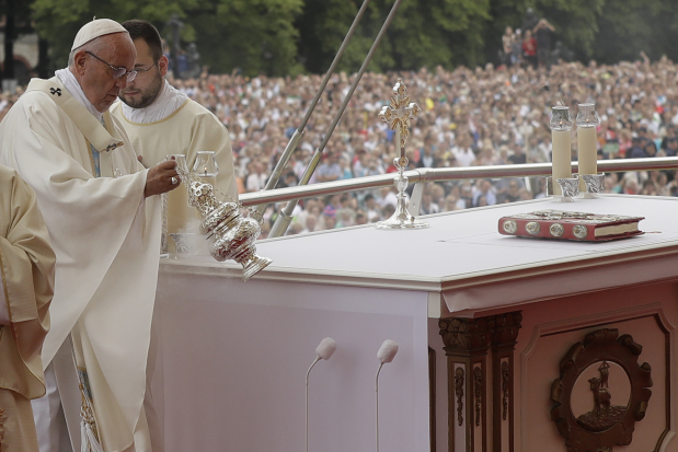 In his first speech after arriving Wednesday, Francis called on Poles to be compassionate and welcoming to those in need, especially refugees. He also met with Polish President Andrzej Duda, whose populist government has virtually slammed the door on asylum-seekers and economic migrants from the Middle East and Africa who are flooding southern European shores. The president also attended the Mass at the Jasna Gora shrine.