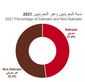 A breakdown of the percentage of Bahrainis and non-Bahrainis last year