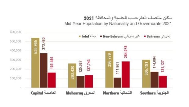 The 2021 data also showed that of the total population, 719,333 were Bahrainis and 785,032 were expats.