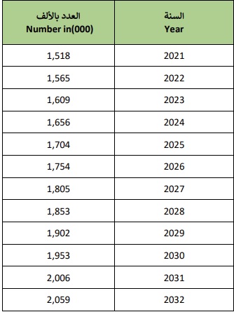 According to projections, the kingdom’s population is set to increase from 1.5 million last year to more than 2m by 2032, with a gradual increase of 50,000 forecast every year.
