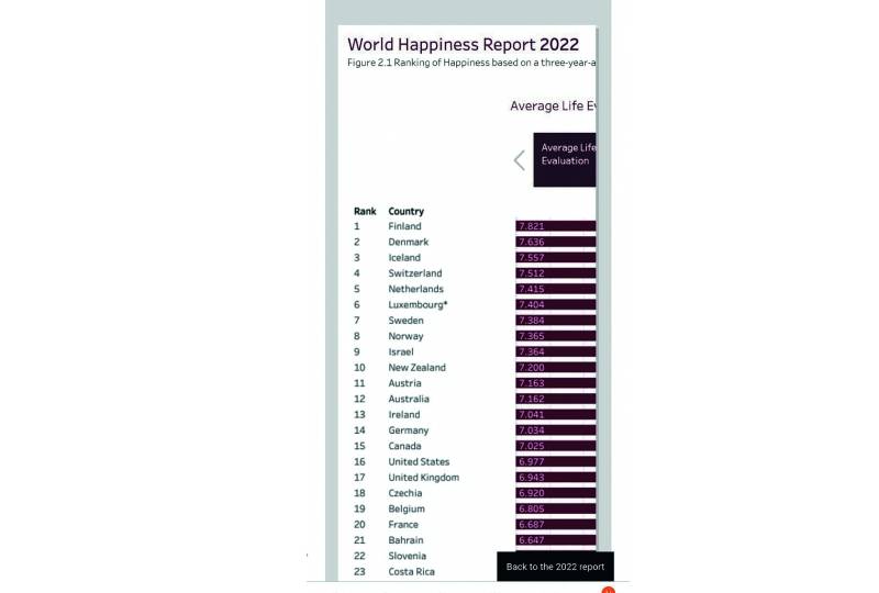 The report also highlights positivity and looking forward. “For the future, the prospects for happiness will depend on a whole range of factors, including the course of the pandemic and the scale of military conflict. But an important contribution will come from improvements in the science of happiness,” the report said.