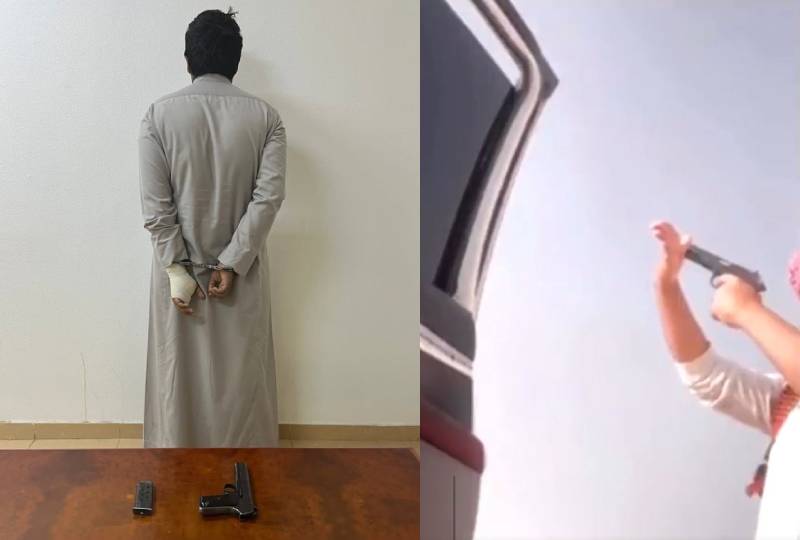 Najran police have arrested a Saudi national who filmed himself shooting his own hand with a gun in a desert area on Tuesday. Legal measures have been taken against the individual and is referred to the Public Prosecution.
