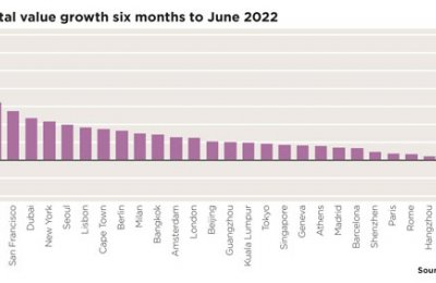 Miami holds the top spot for prime capital value growth in the first half of 2022, recording a half year rise of 12.5%. Lower taxes and a high quality of life encouraged migration from other US locations, fuelling the city’s success. North American cities have performed the strongest in 2022 so far, followed by cities in Europe.