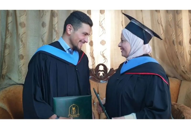 She started high school once again with her son, before going on to study at Yarmouk University. She recently completed her Bachelor's and Master's degrees in the field of Educational Administration which is the same major as her son too.