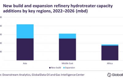 Asia is expected to register the highest refinery hydrotreater capacity additions globally between 2022 and 2026, accounting for about 39% of the total capacity additions by 2026, says GlobalData, a leading data and analytics company.