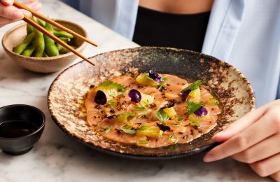 The sharing starter platters include Sambal Edamame tossed in spicy Indonesian chilli sauce or non-spicy salt; Salmon Carpaccio; Honey Glazed Sweet Potatoes with smoked sour cream and spiced Dukkah; and a Salad Bar with a variety of condiments and dressings. These are complemented by a collection of sensational Nigiri and Maki Roll platters, including Tuna Aburi Nigiri, Hamachi Nigiri, Maki with mixed fish or prawns, and Spicy Salmon Nigiri.