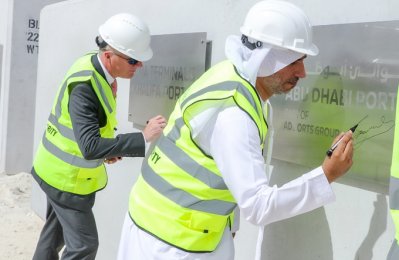David Gatward, Chief Engineering and Technical Services Officer, AD Ports Group, said: “We have made strong progress in the development of CMA Terminals Khalifa Port, as demonstrated by today’s ceremony. In addition to initiating construction of the quay wall, other ongoing marine works including the reclamation of land for the new terminal, construction of a new port basin and an offshore detached breakwater are on track. Recently, the contract for the design and construction of a 33kV substation was awarded as well. The ongoing development and expansion at the terminal will increase our container handling capacity and boost operational efficiency.”