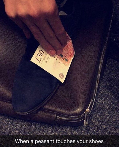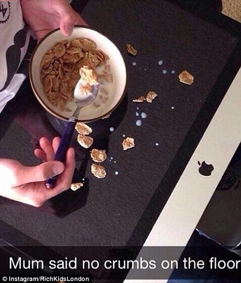 A controversial social media page titled ‘Rich Kids of London’ shows wealthy youngsters using £50 note as toilet paper, champagne bottles as doorstops and iPads as dinner plates.