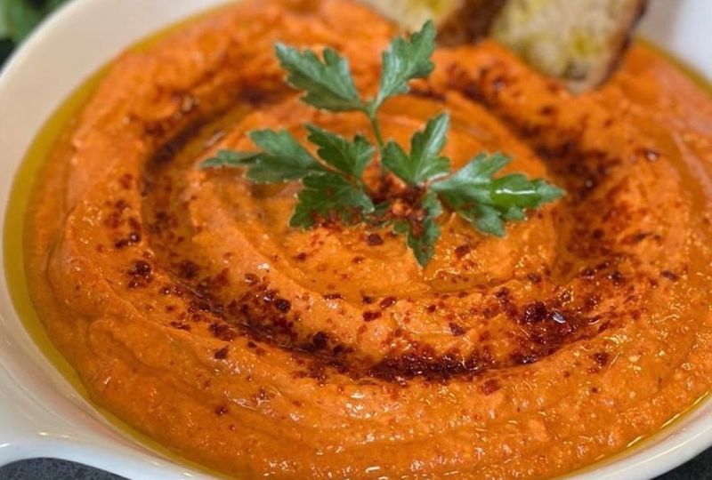 It is a spicy dip made of walnuts, red bell peppers, pomegranate molasses and bread crumbs. It may be garnished with mint leaves or parsley. It is eaten as a dip with bread or spread on toast. It is a good source of vitamins and has little to no cholesterol.