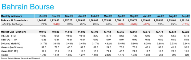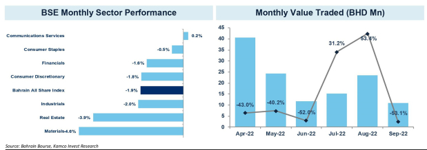Spooked by the slide in global markets, the GCC saw broad-based declines with the Bahrain Bourse (BHB) snapping two straight months of gains to close September 2022 in the red.