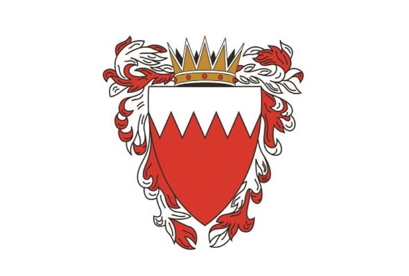 “The Emblem of the Kingdom of Bahrain shall consist of the kingdom’s flag within a three-sided shield-shaped frame, with a top straight base, containing Arab-style motifs engraved on its sides, and surmounted by the royal crown with five triangles.”