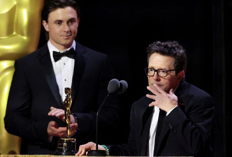 LOS ANGELES - Actor Michael J. Fox, who charmed audiences in the 1980s TV comedy "Family Ties" and the "Back to the Future" movies, received an honorary Oscar on Saturday for advocacy work that has raised $1.5 billion for research into Parkinson's disease.