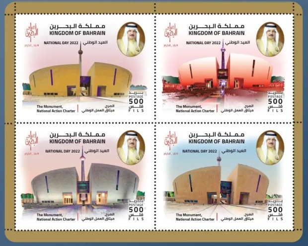 A SET of four commemorative stamps has been issued by Bahrain Post in celebration of National Day, drawing inspiration from the National Action Charter monument for its theme.