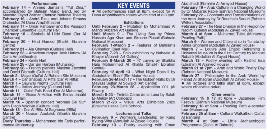 This year’s programme has been developed for Bahrainis, residents and tourists, with events celebrating literature, music, art, fine arts, theatre and more.