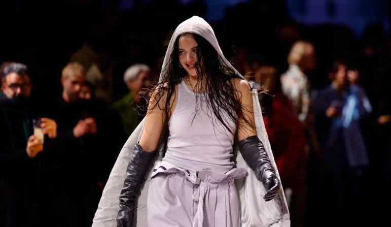 Rosalia opened the live event for the LVMH-owned fashion house, emerging from a darkened set wrapped in a puffy white jacket and loose jogging pants, sunglasses wrapped around her face.