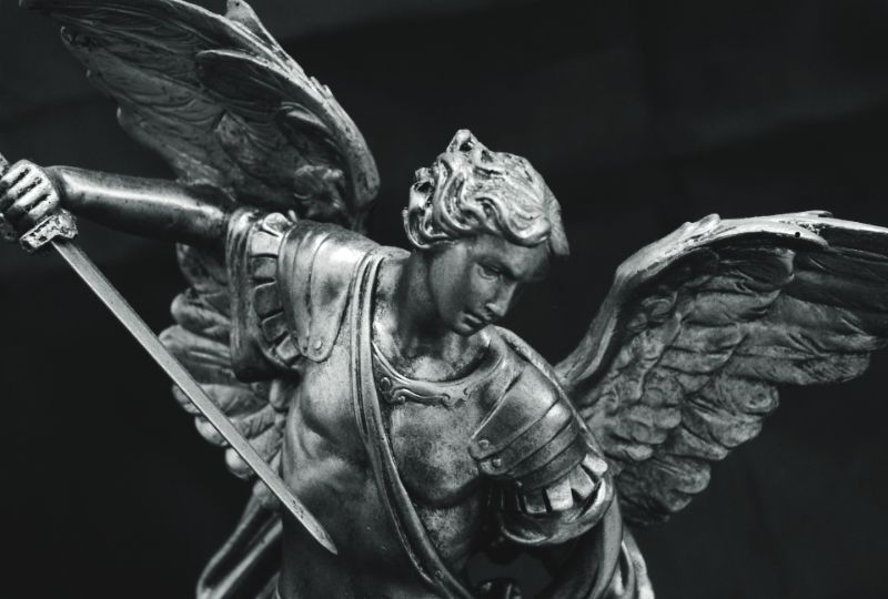 St. Michael is often depicted with a sword because he is seen as the "defender of the heavenly host and the helper of the armies of God against the Devil".