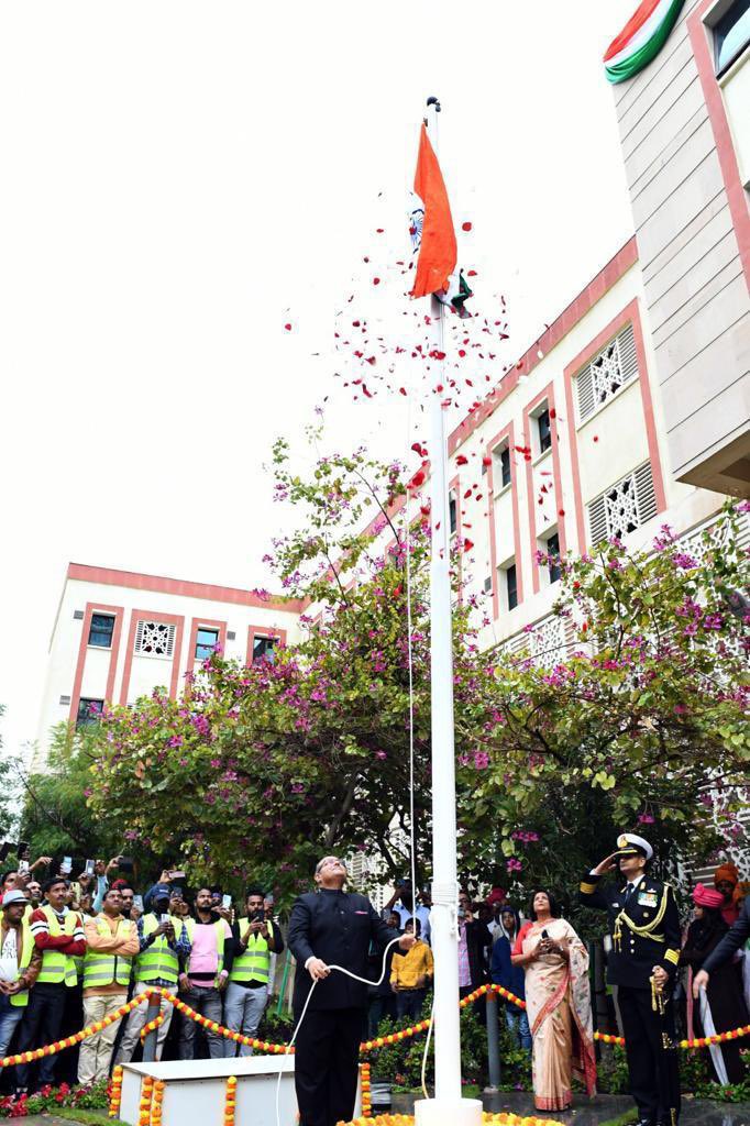 Indian Ambassador Piyush Srivastava hoisted the tricolour and read out Indian President Droupadi Murmu’s address to the nation.