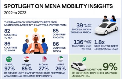 Since its launch in the Mena region, Uber has been investing efforts in improving the user experience on the app. This resulted in over 136 million trips requested through the platform across Mena receiving a five-star rating. The company was also able to launch multiple global-firsts in the region, such as the daily mass-transport commute product, UberShuttle, which saw growth of 1.8x from 2021 to 2022 in Egypt, and expanded to launch yet another global-first B2B service in 2022.-- TradeArabia News Service
