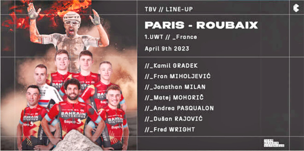 Team Bahrain Victorious will face 29 cobbled sectors totalling 54.5km across the 256km route from Compiègne to the Roubaix Velodrome, in the 120th edition of Paris Roubaix.