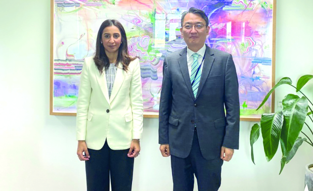 Sustainable Development Minister Noor Al Khulaif met South Korea’s Deputy Foreign Minister for Multilateral and Global Affairs Park Yongmin during her visit to South Korea as part of the high-level Bahraini business delegation headed by Industry and Commerce Minister Abdulla bin Adel Fakhro.