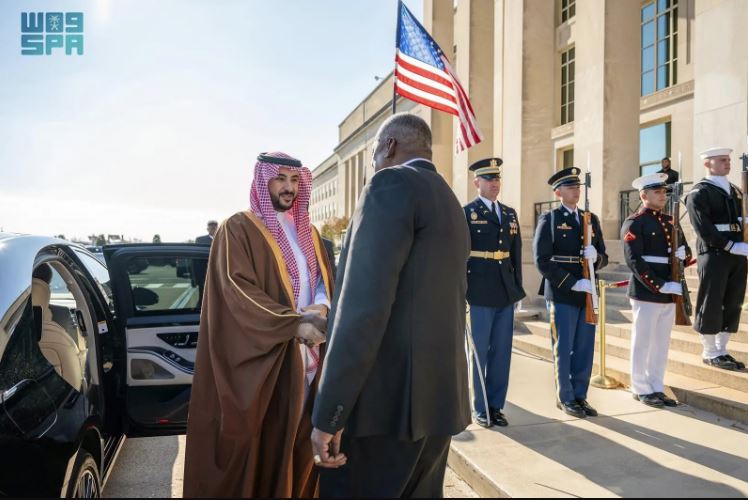 Washington: The US Secretary of Defense Lloyd Austin received the Saudi Defence Minister, Prince Khalid bin Salman bin Abdulaziz, at the headquarters of the US Department of Defence in Washington.