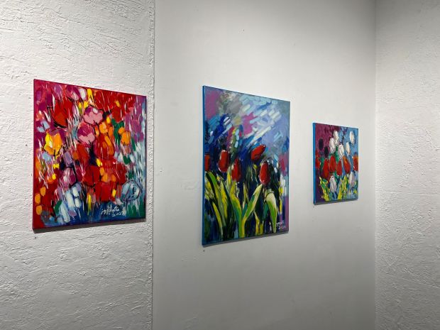 More than 20 pieces are being showcased during the nine-day exhibition, much of which feature abstract floral themes.