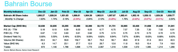 Snapping a three-month losing streak, Bahrain’s equity market closed November 2023 with a gain of 0.5 per cent at 1,939.77 points.