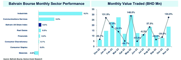 The benchmark All Share Index on Bahrain Bourse (BHB) reported slightly higher returns for year-to-date (YTD-2023) at 2.3pc, according to analysis by Kuwait-based Kamco Invest.