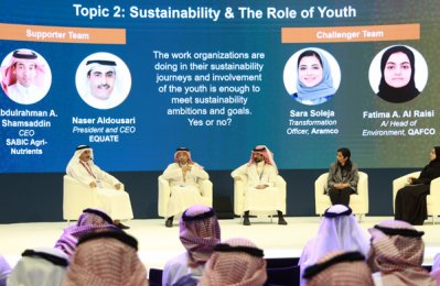 The forum continued with a debate session, which provided an opportunity for the youth to challenge industry leaders Naser Aldousari, President and CEO, EQUATE, and Abdulrahman A. Shamsaddin, CEO, Sabic Agri-Nutrients, on the young generation’s role in reaching sustainability and digitalisation targets.