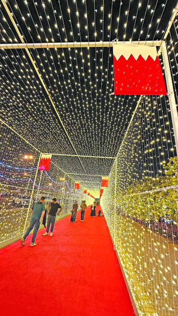 Festive decorations have gone up in a number of locations including Isa Town, Hamad Town, Manama, Saar and Zallaq, as the country’s landmarks, ministries and malls are lit up in the red and white colours of the Bahrain flag.