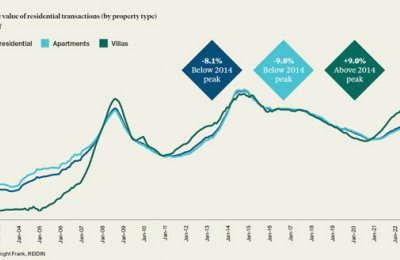 Apartment and villa prices are now up by 19% and 18%, respectively, on this time last year, but the market, crucially, remains some 8.1% down on its 2014 peak.