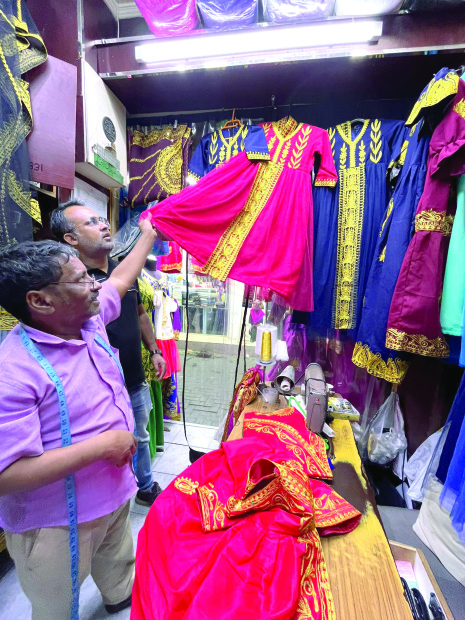 Bangladeshi tailor Mohammed Dulal said that he has been designing and sewing traditional Bahraini dresses for months in preparation for National Day to ensure he has enough stock for the National Day season.
