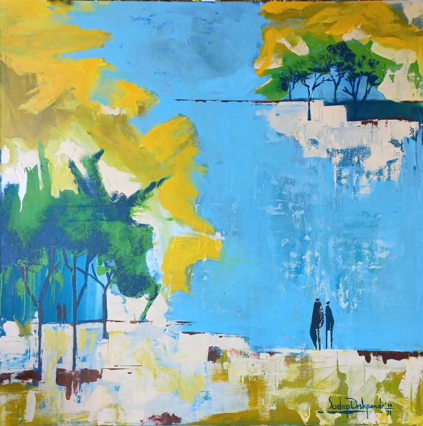Sudeep believes it’s the subject matter that decides the colour palette, size or scale of the artwork, and its orientation.