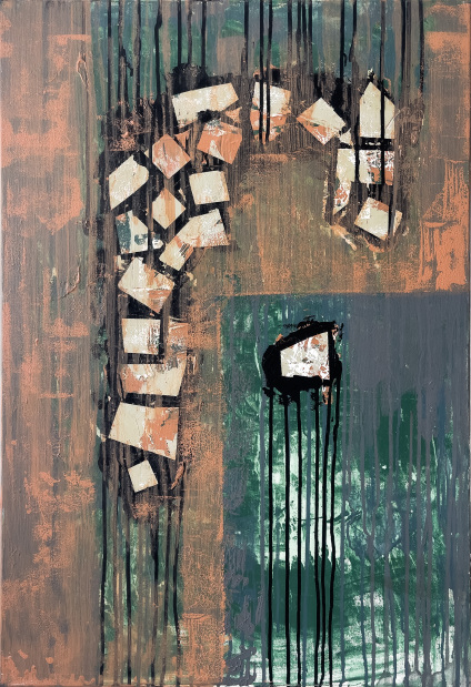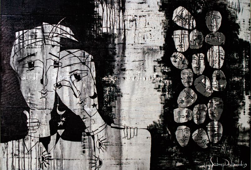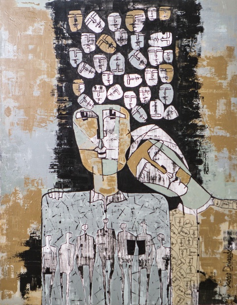 “The medium here is a mix of canvas and paper. Paper is fragile and I used it to portray ‘patch-ups or compromises’ in relationships.