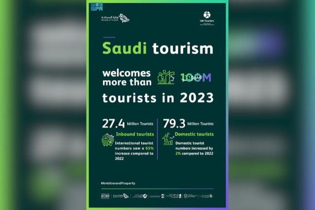 Saudi Arabia has received international recognition and praise from UN Tourism and the World Travel & Tourism Council for the "remarkable achievement" of receiving over 100 million tourists in 2023, according to a press release issued today by the Ministry of Tourism.