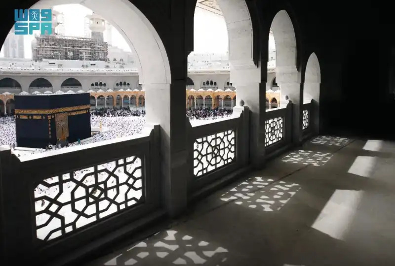 The elegance of Islamic design extends to the luxurious marble surfaces and the gilded mashrabiyas (intricately carved wooden lattice windows). Even the terrace overlooking the Tawaf area reflects Islamic aesthetics, offering a glimpse into the deep historical and religious significance of the site.