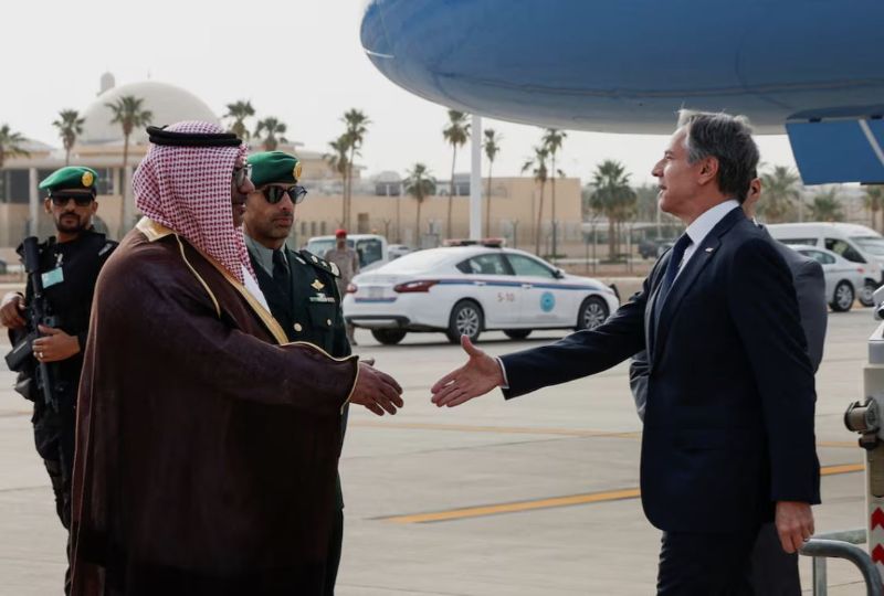RIYADH - US Secretary of State Antony Blinken arrived in Saudi Arabia on Monday, the first stop in a broader trip to the Middle East to discuss issues including the governance of Gaza once the war with Israel ends.