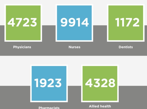 A breakdown of the total healthcare professionals licensed by the NHRA last year