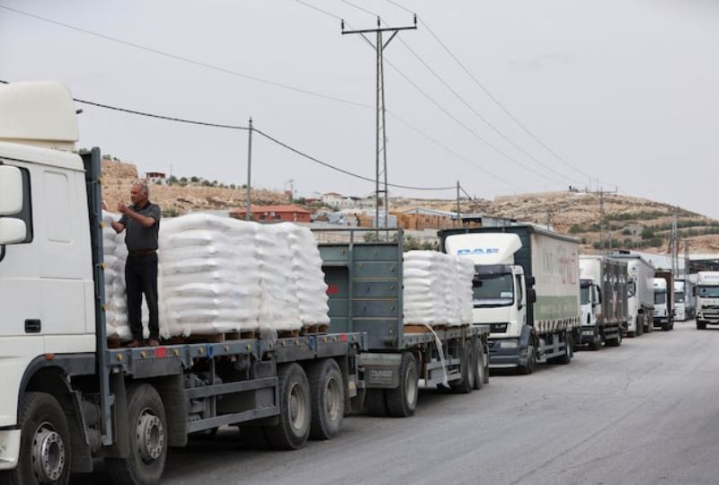 Some officials say as many as 2,500 trucks were waiting, with Egyptian warehouses nearly full.