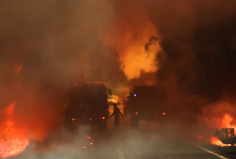 Reuters footage overnight showed local residents pouring buckets of water on advancing flames near Nelas.