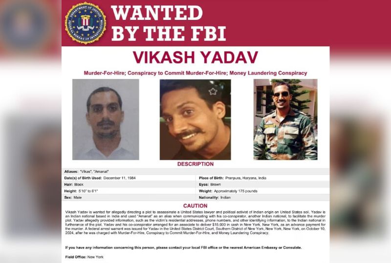 The US Justice Department unsealed the indictment of Vikash Yadav, 39, on Thursday, alleging he led a plot to murder a Sikh separatist in New York.