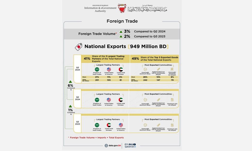 Bahrain’s non-oil trade sector registered modest growth during the third quarter of 2024, according to the latest data from the Information and eGovernment Authority.