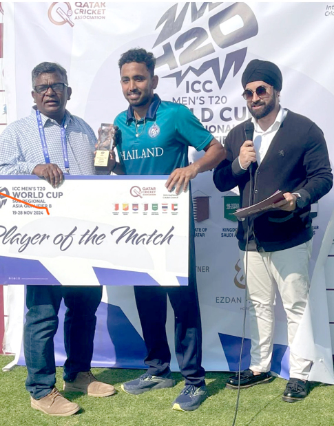 In reply, Thailand faced their own challenges as Bahrain’s bowlers, led by Ali Dawood (4/22), applied constant pressure. Dawood’s brilliant spell accounted for the wickets of Akshaykumar Yadav, Nitish Salekar, and Narawit Nuntarach. Sohail Ahmed (3/17) also played a pivotal role, taking crucial wickets at key moments, including the scalps of Satarut Rungrueang and Sorawat Desungnoen.