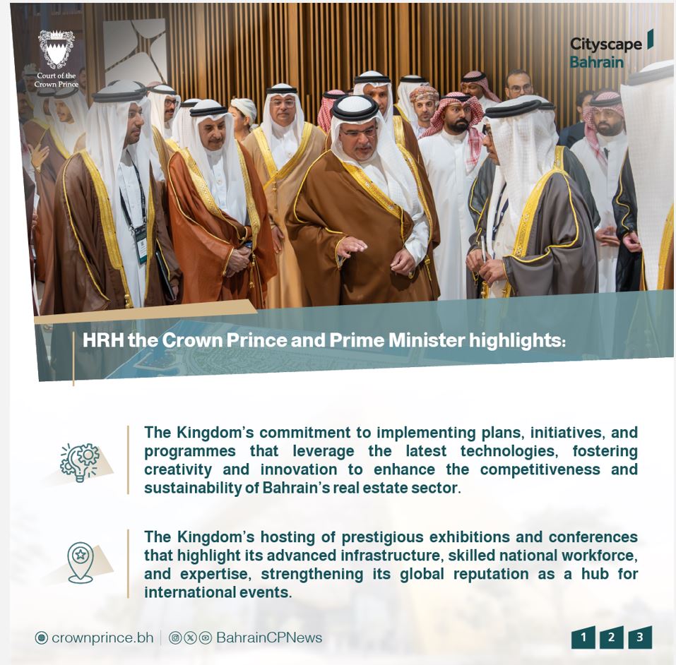 His Royal Highness Prince Salman bin Hamad Al Khalifa, Crown Prince and Prime Minister, inaugurated the third edition of Cityscape Bahrain 2024 at Exhibition World Bahrain.