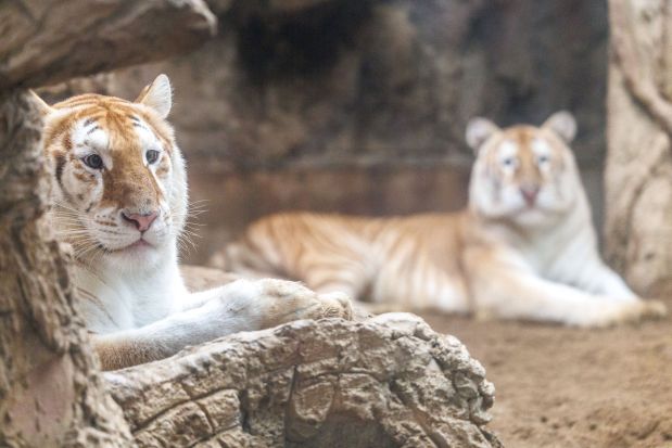 CHIANG MAI, Thailand - Rare golden tigresses with cream-coloured coats and wide eyes at a zoo in northern Thailand have become internet sensations, after luring massive crowds to shows where they have been trained to perform tricks.