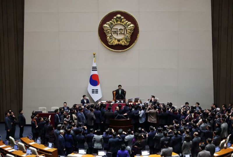 SEOUL - South Korea's parliament began a session on Friday where a vote to impeach acting President Han Duck-soo over short-lived martial law is scheduled, as the Constitutional Court said it would swiftly decide suspended President Yoon Suk Yeol's fate.